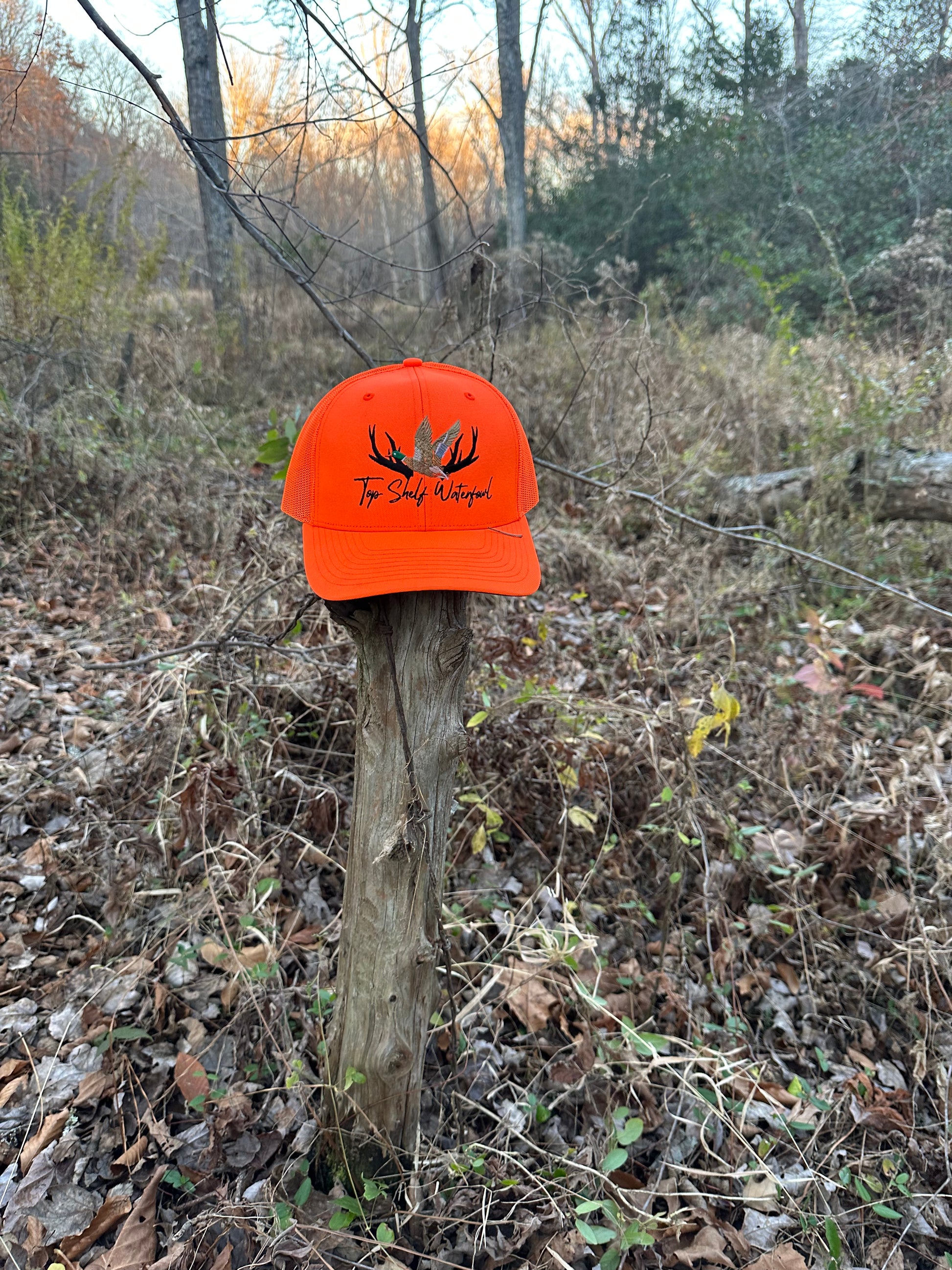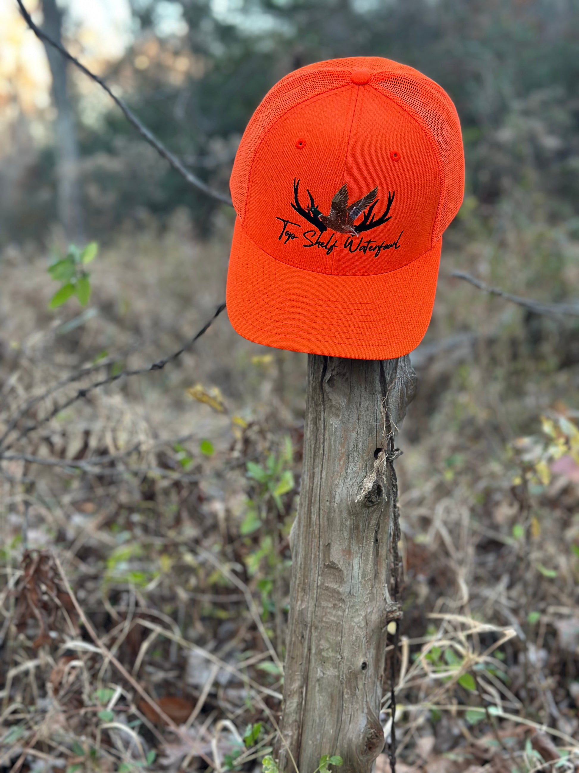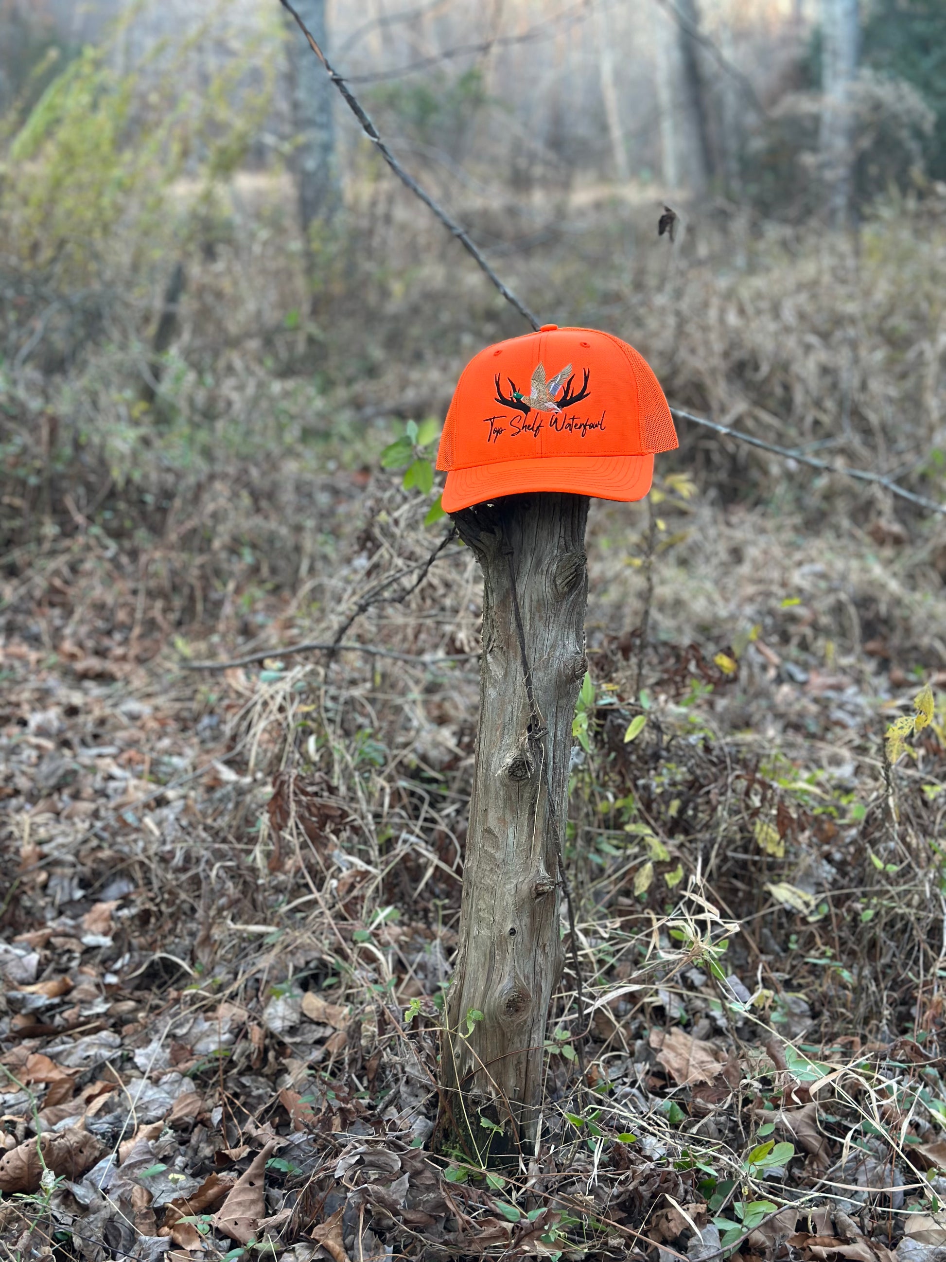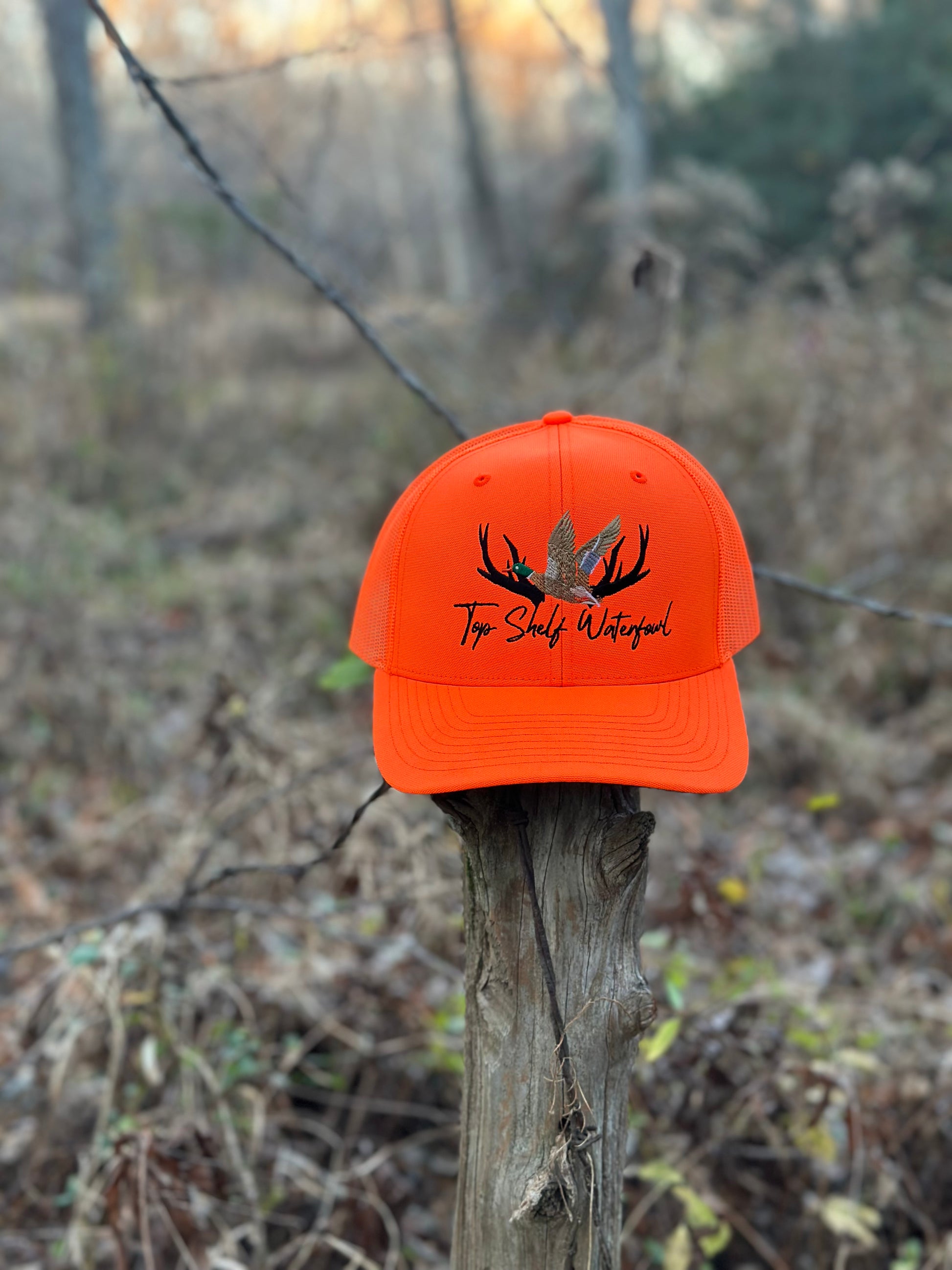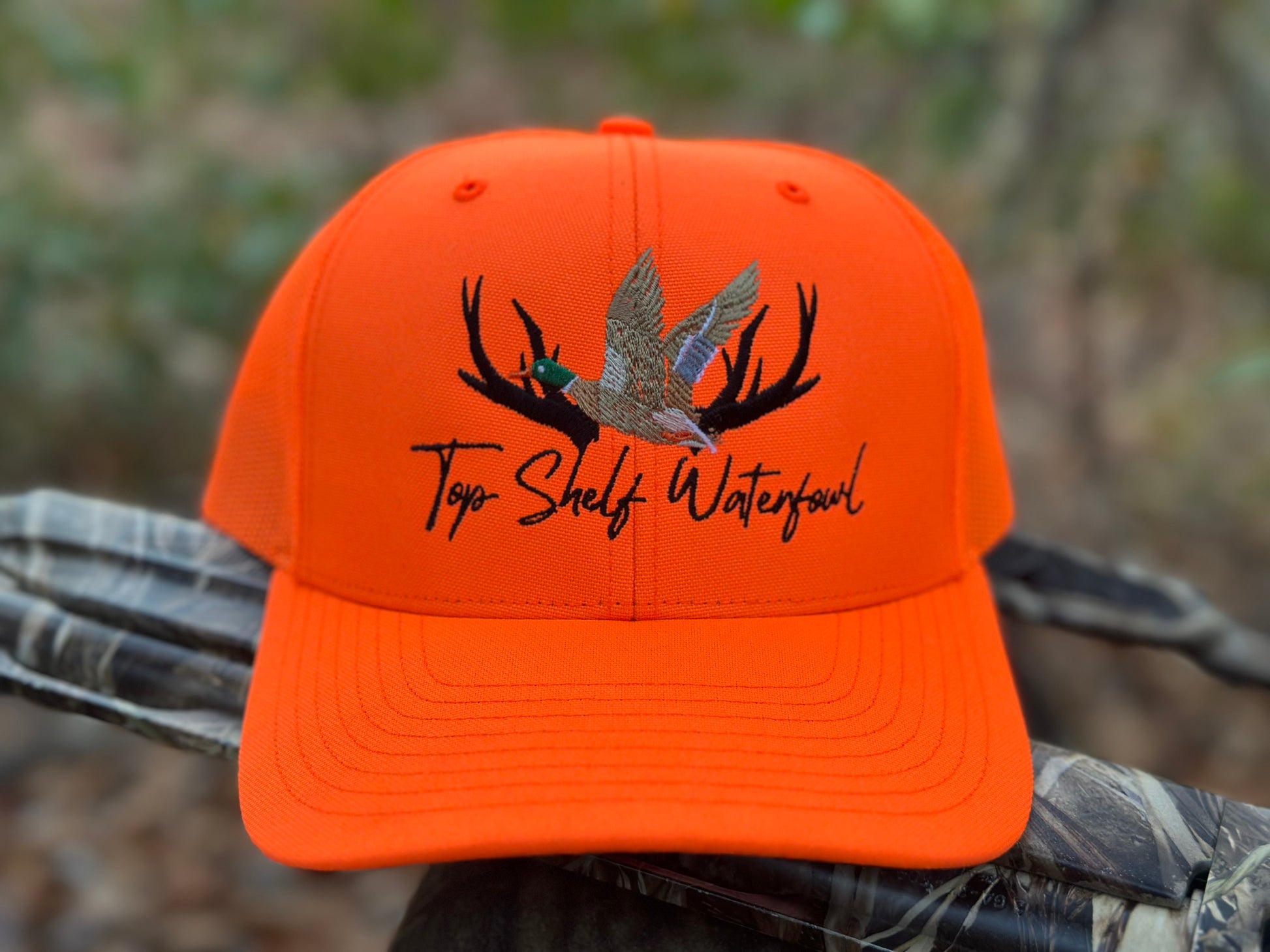 The Duck n Mallard Blaze combines safety and style with its vibrant blaze orange construction, meeting visibility requirements for any hunting season. This Richardson 112 six-panel structured hat features premium embroidered details—a mallard duck and deer antler design—that showcase your waterfowl and upland hunting heritage. The classic fitted silhouette provides comfort during long days in the field, while the durable construction withstands rugged outdoor conditions. Perfect for hunters who demand both function and distinctive gear that reflects their passion for the sport.